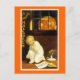 Vintage Halloween Grußkartenillustrierung, die ein Kind "verdorben" von einem Jack o'lantern am Fenster zeigt.