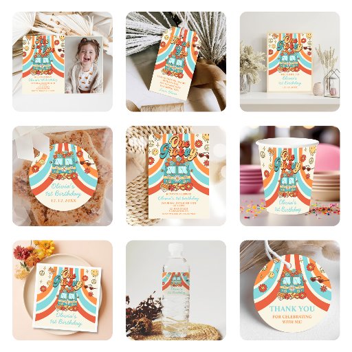 Ein Groovy Retro Rainbow 1. Geburtstagswasser-Flaschenetikett