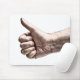 Ein Big Thumbs Up ist ein krasses Bild einer erwachsenen männlichen Hand, die eine Daumen nach oben zeigt. Die Hand des Mannes ist blass und hat einen starken Kontrast von hell zu dunkel, was ihm einen robusten Look verleiht. Der Hintergrund des Bildes wurde entfernt, sodass es isoliert auf dem Produkt erscheint.