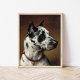 Ein großes Ding | Carl Reichert’s A Great Dane ist ein elegantes Profilbild-Portrait eines auffallenden schwarz-weißen großen tänzerischen Set vor einem launenhaften braunen Hintergrund. Das Gemälde fängt die dominante Präsenz und würdige Ausdruckskraft des Hundes ein und betont sein schlankes Fell und sein kraftvolles Bauen. Die geschickte Verwendung von Licht und Textur durch Reichert unterstreicht den edlen Charakter der Rasse und schafft eine zeitlose und faszinierende Darstellung dieses majestätischen Hundes. Verwenden Sie die Entwurfstools, um einen benutzerdefinierten Text hinzuzufügen oder das Bild zu personalisieren.