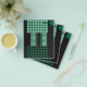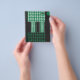 Das Design ist eine Collage aus verschiedenen Mustern und Designs. Eine ausführliche Beschreibung: ・ Links Seite: Ein großer Bereich mit geometrischen Schwarz-Weiß-Mustern. o daneben ein kleinerer Bereich mit grünen und weißen Streifen, der sich in Reihen wiederholt mit weißen Silhouetten des Kopfes einer Person überdeckt. o darüber eine solide, dunkelgrüne Form, die einem Baum oder Blatt ähnelt. ・ Rechts: o Die obere Silhouette hat die gleiche Kopfstruktur wie auf einem dunkelgrünen Hintergrund, oder im unteren Bereich befindet sich ein geometrisch-schwarz-weißes Design, das dem auf der links Seite ähnelt, jedoch mit grünen Akzenten am unteren Rand. Die Kombination dieser Muster schafft ein visuell interessantes und dynamisches Design