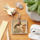 Ein grünes Mit Augen Calico Katze Kunstportrait Schlüsselanhänger