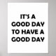 Fügen Sie Ihrem Kleiderschrank etwas Optimismus mit dem Design "Es ist ein guter Tag, einen guten Tag zu haben" hinzu. Mit einem sauberen, kühnen Text auf dunklem Hintergrund ist es ein großartiges motivierend Stück.