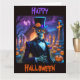 Ein spukhaftes und hübsches Skelettbäckerchen zu Halloween in einem erschreckenden Friedhof. Fügen Sie Ihren eigenen personalisierten Text hinzu.