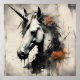 Schwarz-Weiß-Einhorn mit orangen Blume zu Halloween