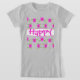 Ein kleines Mädchen Designer glücklichen T - Shirt grau mit hellrosa. Der glückliche Text kann auf jede Nachricht oder jeden Namen personalisiert werden, oder Text und Banner sind abnehmbar.