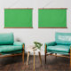 Ein hellgrünes Set mit weißer Ba. Wandteppich Mit Holzrahmen