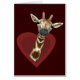 Die Hintergrundfarbe kann geändert werden! niedliche süße Giraffe, die aus einem dunkelroten Herzrahmen herausguckt