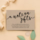 Feiern Sie den Beginn Ihrer Reise zusammen mit unserem eleganten, rustikalen, modernen braunen Kraftthema, erarbeitet "A note on gifts" Hochzeitseinladung eingeschlossen Karte, Wunsch, Bargeld. Jede Karte verbindet modernes Drehbuch mit romantischem Flair und ist so konzipiert, dass sie das Wesen Ihres besonderen Tages vermitteln kann. Diese Karte eignet sich perfekt für Paare, die einen einzigartigen Weg suchen, ihre Flitterwochen-Träume zu teilen. Sie lädt Ihre Lieben ein, zu unvergesslichen Erlebnissen beizutragen. Ob in einem luxuriösen Umschlag eingebettet oder zusammen mit Ihren Hochzeitseinladungen präsentiert, unsere Karte verleiht Ihrer Feier eine Touch von Zauber und verspricht wertvolle Erinnerungen, die ein Leben lang halten. Entworfen von TeeshaDerrick.