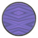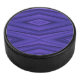 Ein Hockeypuck mit einem lebendigen, violetten geometrischen Muster, das geschichtete Diamantformen zeigt. Die Seitenansicht zeigt eine texturierte schwarze Kante. Der Ton ist modern und kühn.