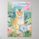Treten Sie ein in eine bezaubernde Welt, in der Wildnis und Ruhe in perfekter Harmonie miteinander verschmelzen. Diese künstlerische Schöpfung von AI vereint das faszinierende Wesen eines niedlichen Tigers inmitten eines üppigen Gartens. Das Bild zeigt die majestätische Präsenz des Tigers vor dem Hintergrund eines lebendigen Blattwerks und zarten Blüten. Der Kontrast zwischen der kraftvollen Gnade des Tigers und der ruhigen Schönheit der Natur schafft eine auffallende visuelle Erzählung. Der Blick des Tigers strahlt ein Gefühl von Neugier und Verwunderung aus, als ob er die Wunder seines natürlichen Lebensraums erforscht.