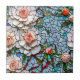 Hübsche Kachel mit atemberaubend blauen und rosa Imitaten Mosaik Blumenmuster, mit lebendigen korallenfarbenen Blume, die mit Salbei grün. Das aufwändige Design imitiert das Aussehen von Buntglasfliesen und Keramik-Fliesen und schafft eine elegante und zeitlose Ästhetik.