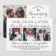 Wenn unerwartete Umstände eine Verschiebung Ihrer Hochzeitsfeier verursacht haben, ist der erste Jahrestag eine perfekte Gelegenheit, ein Jahr später zu feiern. Freuen Sie sich auf das elegante Party zum 1. Jubiläum mit der stilvollen und modernen 4-Foto-Collage. Alle Formulierungen sind einfach zu personalisieren, einschließlich Zitat, das lautet "Ein Jahr später beginnt die Hochzeitsfeier". Passen Sie die Zeit zwischen der Hochzeitsfeier und dem eigentlichen Party an, ob es nur ein paar Monate oder ein paar Jahre sind. Geben Sie alle Informationen Ihrer Wahl ein, wie z. B. Ehedatum, Verlängerungspläne für das Versprechen, Einzelheiten zum Party nach der Einführung, Ort der anschließenden Hochzeitsfeier, Kleidungscode, uAwg, Website usw. (IMAGE PLACEMENT TIP: Eine einfache Möglichkeit, ein Foto genau so zu zentrieren, wie Sie gewollt haben, ist es, es einzuschneiden, bevor Sie es auf die Zazzle-Website hochladen.) Das moderne, minimalistische Schwarz-Weiß-Design umfasst vier Bilder der Neuvermählten, eine trendige handgeschriebene Schriftzeichen-Kalligraphie und eine schicke Schreibmaschinentypografie. Egal ob Sie sich aufhielten, eine kleinere Miniaturmesse oder eine Kleinsthochzeit hatten, oder Ihre Feier musste aufgrund einer gepflegten Pandemie-bedingten Verschiebung verschoben werden, das Glück nach dem Party kann immer noch beginnen. Herzlichen Glückwunsch an die Braut und Bräutigam!