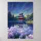 Erleben Sie die Ruhe eines japanischen Tempels, der von einem ruhigen See umgeben ist. Der Tempel ist von blühenden rosa Blume umgeben, mit einem üppigen grünen Wald im Hintergrund. Kommen Sie und tauchen Sie ein in die Schönheit der Natur und finden Sie innere Ruhe an diesem magischen Ziel.