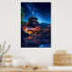 Treten Sie ein in die Ruhe eines abendlichen Ausblicks, wo ein japanisches Holzschloss von einem friedlichen Teich bewundert wird. Der Sternenhimmel oben fügt dieser bezaubernden Szene eine Touch der Magie hinzu und schafft ein ätherisches Ambiente. Tauchen Sie ein in die Schönheit dieser malerischen digitalen Kunst, wo das alte Schloss und das ruhige Wasser von den himmlischen Kronen umschlungen werden.