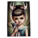 Verloren in einer Welt der Fantasie und Liebe. Ein junges Mädchen hält ein Reh in den Armen. Das Mädchen trägt ein blaues Kleid und hat ein Paar Hörner auf dem Kopf. Die Szene ist Set in einem Wald, mit Bäumen, die das Mädchen und das Reh umgeben