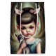 Ein junges Mädchen, das ein Reh hält Mittlere Geschenktüte