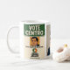 Kaffeetasse in Form einer Karikatur mit 3 historischen Episoden im Leben von Adolfo Súarez. Einerseits das Plakat der Unión de Centro Democrático (UCD) bei den Wahlen 1977. Andererseits das Plakat des Centro Democrático y Social (CDS) 1987. Und in der Mitte Adolfo Súarez, der die unvergesslichen Worte ausspricht: "Ich kann versprechen und ich verspreche".