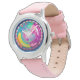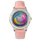 Kinderuhr aus Edelstahl mit rosa Lederarmband