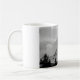 Ein Schwarz-Weiß-Foto des Berges Rainier. Im Vordergrund stehen Bäume. Auf der Spitze des schlafenden Vulkans bilden sich lockenförmige Wolken, die den umliegenden Himmel füllen. Image Copyright ©2023 Kimberly J Tilley. zazzle.com/store/developingnature
