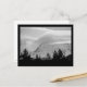 Ein Schwarz-Weiß-Foto des Berges Rainier. Im Vordergrund stehen Bäume. Auf der Spitze des schlafenden Vulkans bilden sich lockenförmige Wolken, die den umliegenden Himmel füllen. Image Copyright ©2023 Kimberly J Tilley. zazzle.com/store/developingnature