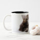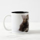 Ein Kätzchen der Maine-Waschbärkatze Zweifarbige Tasse