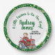 Niedlicher kleiner Bauer auf Traktor, Babydusche Teller, bearbeiten Sie den Text selbst, wenn Sie bestellen