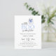 Einfache und moderne Halloween-Babydusche mit einem niedlichen Geist, der einen Babykürbis auf einem sauberen, weißen Hintergrund hält. Mit den Worten " ein kleines Boo ist fast fällig " und Streifen pastellblau und weiß Rückseite. Bereit für einfache Personalisierung.