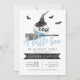 Eine Aquarell-Hexe und ein süß-weißer und blauer Kürbis machen Sie zur Liebe dieser halbwüchsigen Babydusche. "A Little Boo is Almost Due" wird in skurriler Schrift beschrieben. Fügen Sie unten Ihre uAwg-Informationen hinzu. Die Rückseite der Karte ist blau, um auf die Vorderseite zu passen.