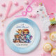 Niedliche Tierdschungeltheater Baby Dusche Papier Teller. Adorable Cartoon Elefant, Giraffe, Löwe, Tiger und Giraffe mit hübschem grünem Blattwerk. Dies kann für einen Jungen, ein Mädchen oder eine geschlechtsneutrale Babydusche sein.