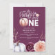 Blüten und Kürbis Herbst 1. Geburtstag Party Einladung in lila, grün und pfirsichfarben. Mit schöner Aquarellblüte, Blattwerk und Kürbisdesign. Ideal für Herbst/Herbst. Ideal zum Herbstgeburtstag.