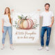 Feiern Sie die Ankunft Ihres herbstlichen kleinen Mädchens mit diesem charmanten Design "A Little Pumpkin Is On Your Way". Dieses süsse Herbstthema mit seinen sanften Wasserfarben und dem pfirsichfarbenen Kürbis, umgeben von zarten rosa Blume und Grün, eignet sich perfekt für Babyduschen, Gender-Enthüllungen oder saisonale Ankündigungen. Dieses Kunstwerk ist eine schöne Mischung aus rustikal und skurril und verleiht Ihrem besondere Anlass eine gemütliche, festliche Touch.