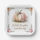 Ein kleiner Kürbis ist auf dem Weg zur Babydusche Pappteller