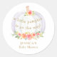 Dieser hübsche Babyduschaufkleber ist mit einer Aquarellblume in Korallentönen, Rosa, Gold und Grün dekoriert, und die Worte "Ein kleiner Kürbis ist auf dem Weg!" Einfach mit Ihrem Namen anpassbar. Original Wasserfarbe © Michele Davies.