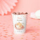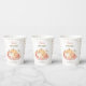 Ein kleiner Kürbis ist unterwegs! Baby Shower Papierbecher mit zauberhaften, gepunkteten Kürbissen in sanften Rosa, Orange, Creme und Grün auf weißem Hintergrund mit einem lustigen Polopunktmuster. Diese Papiertassen eignen sich perfekt für eine bezaubernde Babydusche im Herbst. Einfache Anpassung des Textes - Kate Eden Art