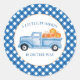 Ein kleiner Kürbisblauer LKW fällt Babydusche Runder Aufkleber