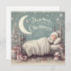 Treten Sie ein in ein zauberhaftes Winterwunderland mit dieser charmanten Weihnachtskarte. Das Design zeigt ein kleines Mädchen, das gemütlich im Bett liegt, ihre Träume voll von Urlaubserzauber. Sie schwimmt zwischen glitzernden Schneeflocken, steil über einen schneebedeckten Pinienwald, um einen Haufen magischer Weihnachtsgeschenke zu finden, die ihr unter einem schimmernden Weihnachtsbaum gewartet werden. Diese festliche Karte ist perfekt für jeden, der noch immer an den Zauber der Ferienzeit und die Träume eines wahren weißen Weihnachtsgeschehens glaubt. Bestelle noch heute.