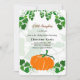 Halloween Pumpkin Babydusche Einladung mit einer warmen orange und grüne Wasserfarbe bemalten Kürbis Design.