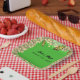 Ein kleiner Schmetterling ist auf dem Weg zum Blum Pappteller