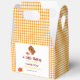Dieses wunderschöne niedliche Baby Duwer Fevor Boxen Design bietet Erntedank Türkei Babydusche "A Little Turkey Is On The Way" Themen mit einem niedlichen kleinen Truthahn, Kürbisse im Herbst und gelb-orange weißen Gingham Rand und Muster in warmen Herbstfarben. Einfach anpassbarer und bearbeitbarer Text, Schriftart und Farben, und feiern Sie Ihr Baby Dusche Party.