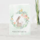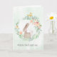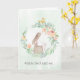 Ein zauberhaftes kleines, sonniges Kaninchen schnüffelt eine der rosa Rosen in einem hübschen Blumenkranz auf der Vorderseite dieser Geburtstagskarte. Ein kleiner gelber Vogel sitzt auf dem Kranz und sieht ziemlich schmutzig aus. Im Text unten steht: "Ein kleiner Vogel hat es mir gesagt..." Das Gefühl wird auf der Innenseite der Karte fortgesetzt, die Staaten "Es ist dein BIRTHTAG!" Auf der Innenseite befindet sich ein zweites Textfeld, das Sie anpassen können. Die Karte ist mit einem hübschen Blumenstrauß-Design auf einer Seite fertig. Alle Bilder sind in zarten Aquarellfarben gehalten, mit einem hellblauen, grünen Aquarellspüler auf der Vorderseite. Geeignet für Geburtstage in jedem Alter.