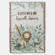 Ein minimalistisches Design mit Aquarellsafari-Baby-Tieren und gedämpftem Dschungelblättern, mit elegantem Text für eine geschlechtsneutrale Babydusche oder zum ersten Geburtstag.