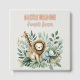 Ein minimalistisches Design mit Aquarellsafari-Baby-Tieren und gedämpftem Dschungelblättern, mit elegantem Text für eine geschlechtsneutrale Babydusche oder zum ersten Geburtstag.
