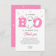 Ein kleines Buch ist zu Halloween Baby Dusche. Set vor einem weißen Hintergrund, nimmt die Phrase "A Little Boo is Almost Due" die zentrale Bühne in whimsikaler, Augen inspiriert Typografie in Rosa mit einem flüchtige Blick-a-Boo-Geist und sanften Sternen mit Blusenstern, um eine Touch von mädchenhaftem Charme hinzuzufügen. Dieses Design ist perfekt für die Feier der jungen, sprichwörtlichen Liebe mit einer ganzen Menge süß und verbindet unheimliche Eleganz mit bezauberndem Genuss.