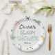 Wie Sie sehen, ist dieses Babyduschpapier mit dem geschlechtsneutralen Thema des Dinosauriers ausgestattet. Mit Aquarell handgezeichnete Dinosaurier in Grün, Rosa und Gelb mit handgeschriebenen Schriften in Grün und Schwarz. Alle können einfach angepasst werden, indem Sie auf den Personalisierungsknopf klicken.