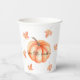 Ein kleines Pumpkin Wasserfarben Halloween Fall Paper Cups, mit dem Wort "Our Little Pumpkin" Design modern, minimalorange Wasserfarbe Kürbis und Herbstlaube, perfekt für Halloween, Fall Baby Dusche, Baby erwartet im Herbst.