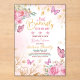 Schmetterlingsmädchendusche Feiern Sie die Ankunft Ihres kleinen Mädchens mit dieser eleganten Butterfly Baby Dusche Einladung mit zarten rosa Blumen, flatternden Schmetterlingen in Aquarellfarben und zarten goldenen Akzenten. Dieses feminine und skurrile Design eignet sich perfekt für Frühlings-, Garten- oder Blumenduschen. Personalisieren Sie einfach den Namen, das Datum, den Ort, die UAWG, und Sie sind bereit, schöne Einladungen zu senden!
