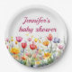 Rosa Blume Baby in Blüte ein kleines Mädchen Wildblume Baby Dusche Papier Teller, elegante rosa Wildblume Aquarell für die Schwangerschaft Mama für ihr Baby Dusche Party.