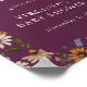 Das Begrüßungsschild "Burgundy Boho Little Wildblume Baby Shower" ist ein Symbol für Eleganz und Charme, mit handbemalten Wasserfarbenblumen in kräftigen Farbtönen Bordeaux, Gold, Creme und Violett, ergänzt durch üppige Vegetation. Diese Wildblumen sind ideal für jede Jahreszeit und in einem modernen Nebengleis eingerichtet. Mit cremefarbenem Text auf bordeauxrotem Hintergrund und einem whimsical Blumenmuster setzt dieses Willkommensschild einen raffinierten und einladenden Ton für Ihre Feier und sorgt dafür, dass Ihre Gäste von ihrem Ankunft an herzlich empfangen und verzaubert werden.
