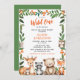 Ein kleiner Wild One ist unterwegs - Woodland Animals Baby Shower Einladung! Niedliche Waldtiere Thema Baby Dusche Einladung mit Illustrationen von einem possum, doe, Bär, Fuchs, Waschbär, Maus und Eule in der Waldszene. Spaß und spielerische Waldtiere machen die perfekte Babydusche-Einladung.
